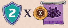 ポイントは、プレイヤーの目の前にあるパワー2のカードの枚数を数え、その数にこの属州の影響トークンの値を掛けることで獲得できます。 |