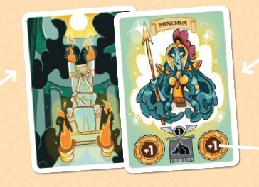 神カード1枚を取ったとき、プレイヤーはそれを公開し、ただちにその効果を適用し、その後、プレイヤーの手札に入れます。このカードはテーブルにプレイすることはできず、ゲーム終了までプレイヤーの手札に残ります。プレイヤーは手札に3枚より多くの神カードを持つことはできません。プレイヤーの手札には常に4枚のカードがあることを忘れないでください。