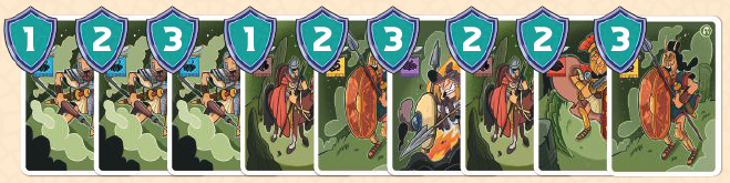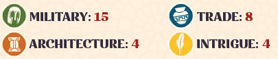 ポイントは、プレイヤーの前にいる軍事カードの枚数を数え、その数にこの属州の影響トークンの値を掛けることで獲得できます。 |