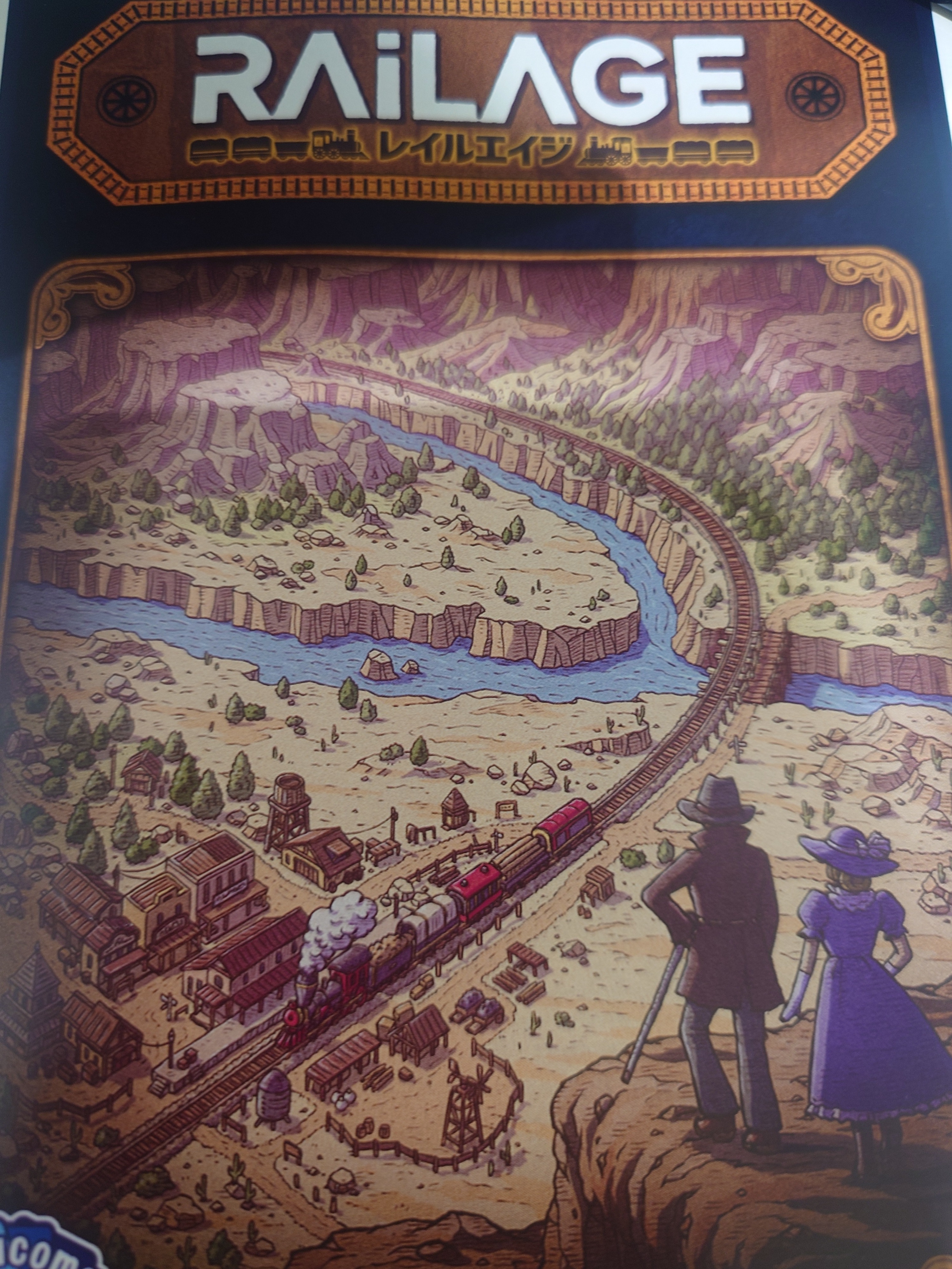 軽ゲーの宿命として、フレーバーを感じさせづらいことがあると思います。だけどレイルエイジはいい感じにシブい! 台紙のアートも焦げ茶と金のダイスも鉄道へのロマンを感じさせてくれます。