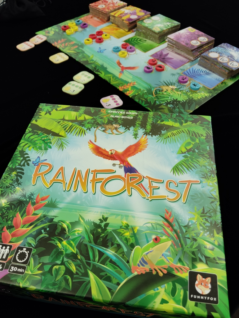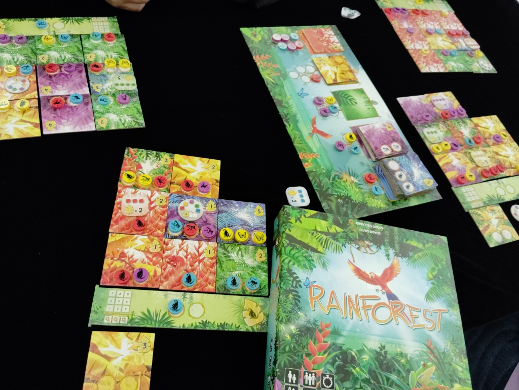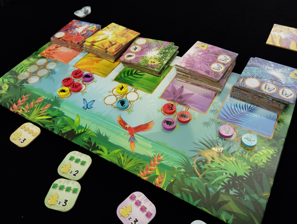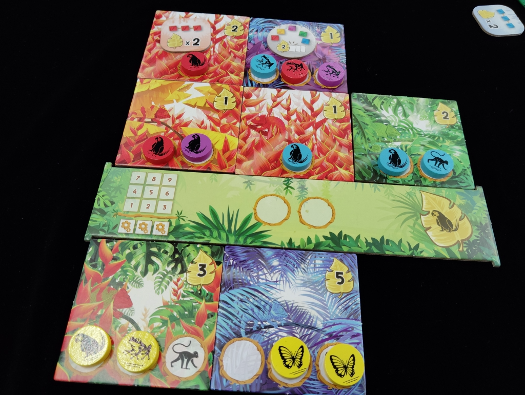 タイルとチップをどの組み合わせで獲得しようかや、連続隣接ボーナスや5色ボーナスをどのタイミングで獲得するか、自分のお気に入り生物だけで頑張って揃えるかの悩ましさを感じながら、生態調査を楽しめるゲーム。