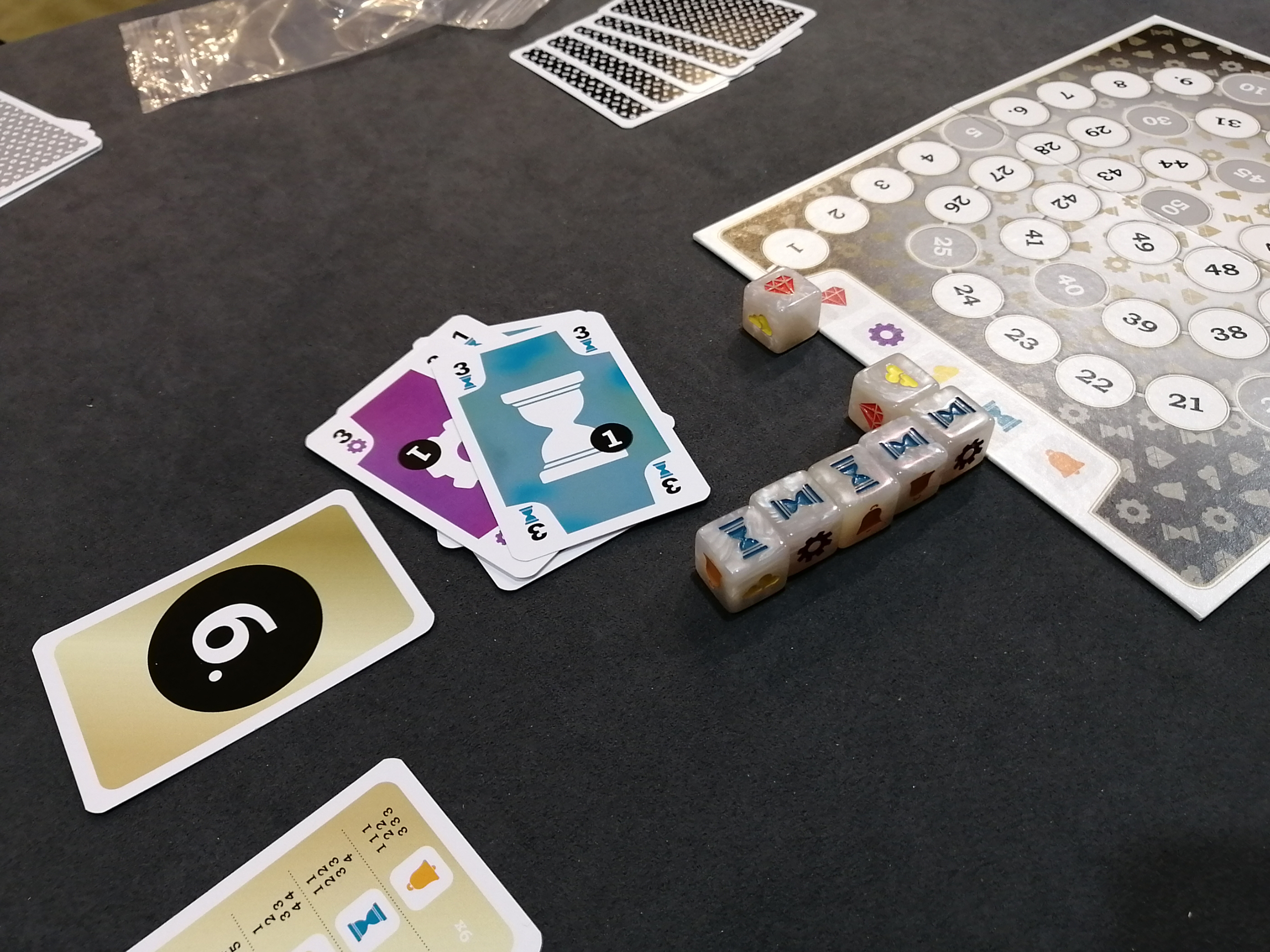 カードの補充は6枚になるようになので、カードを使わないのも次ラウンドが辛いかもしれないが、ダイス要素やその時の手札との噛み合わせもあるので流れを待とう。