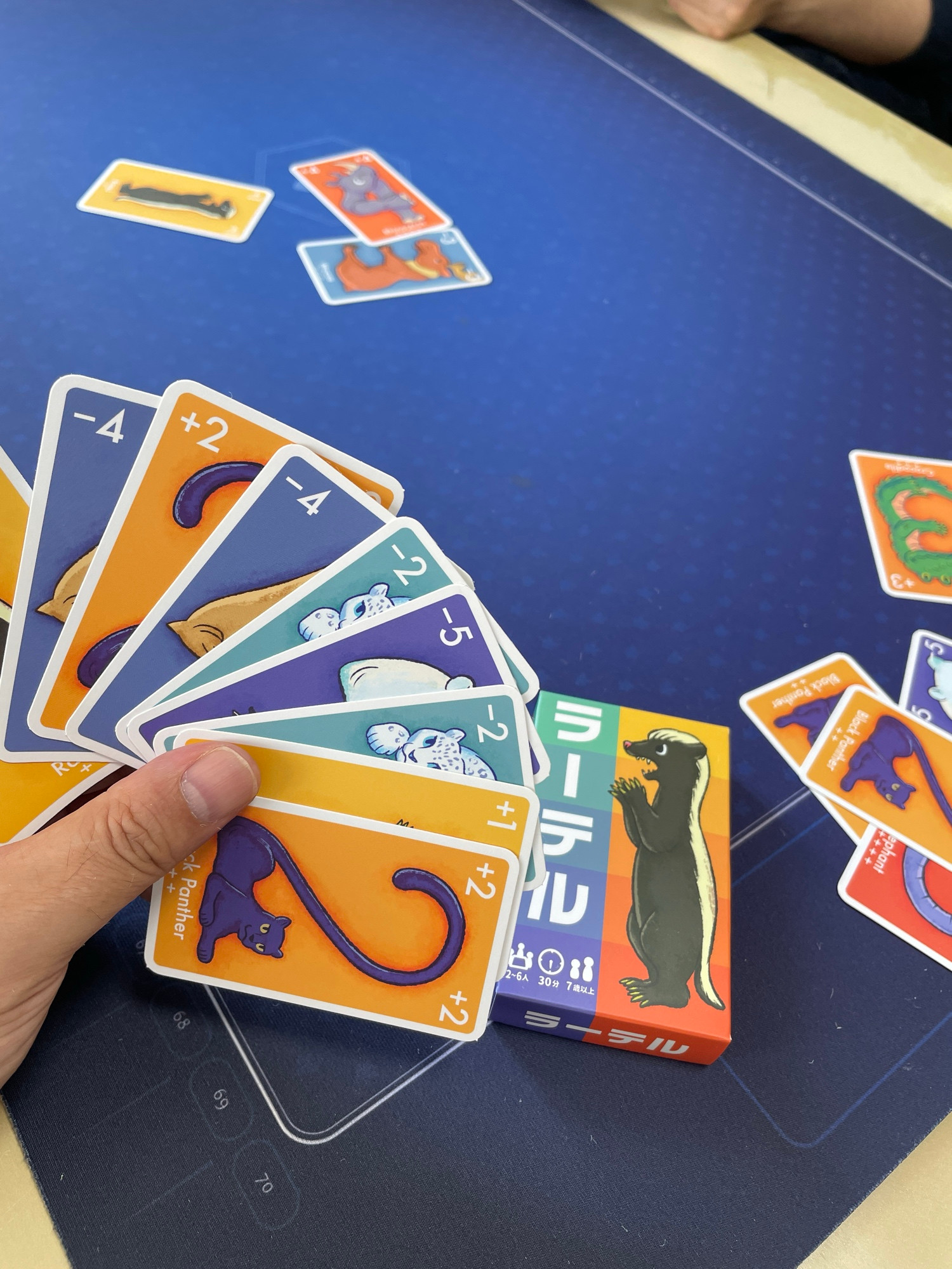 手札が増えたりするゴーアウト、いわゆる大富豪系ゲームです。数字が-5から+5という、あまり見ないタイプのカードを使います。