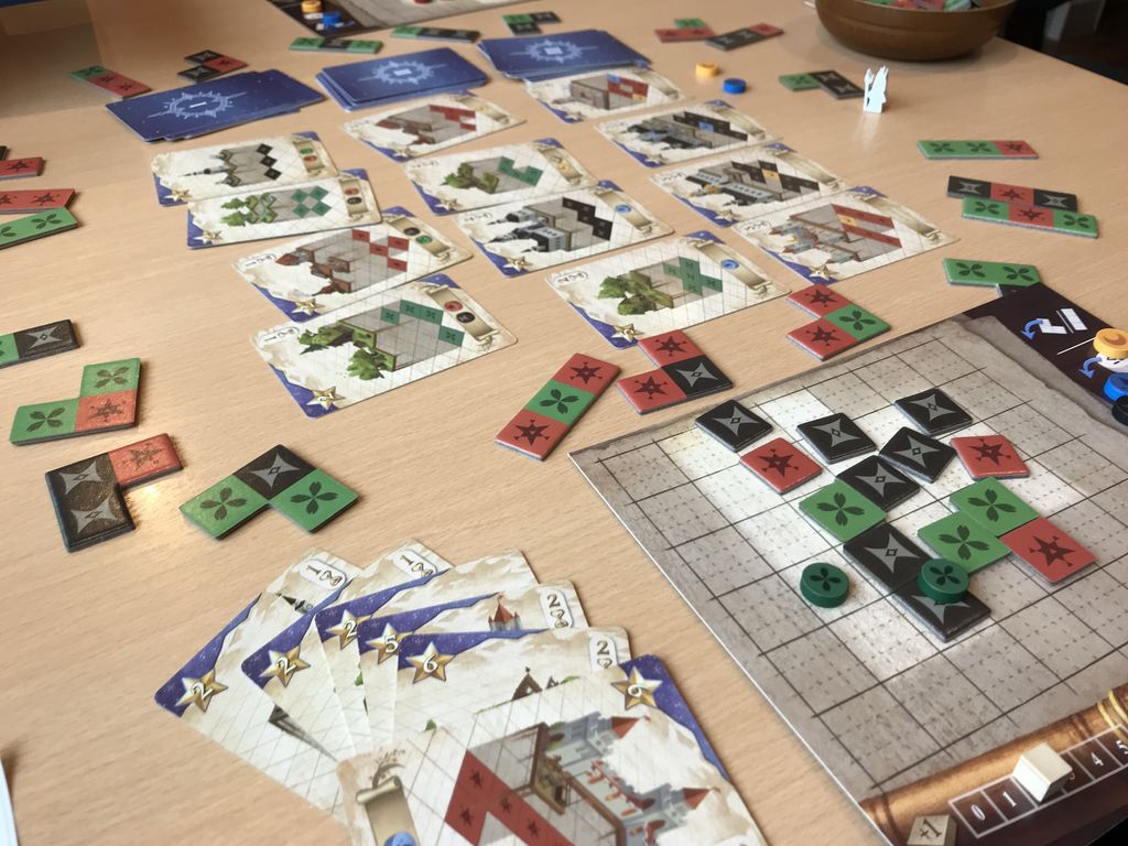 新しい建造物が出てくるタイミング以外は運要素がありません。長考するタイプや大概のゲーマーは「相手の庭と公開されている建造物の設計図の比較」や「チップの残り枚数」「この後手に入るパネル」それを見越して「自分がこれから建てれる建造物はどれ」と、1アクションだけにだいぶ考えてしまいます。
