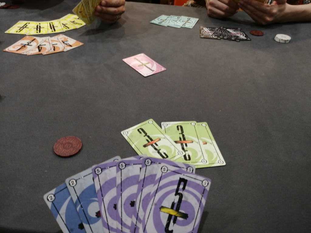 久しぶりに遊ぶとゲームの感覚とか忘れちゃってるから1ラウンド目に1人の方にうまく出し切られちゃって大量得点を与える。