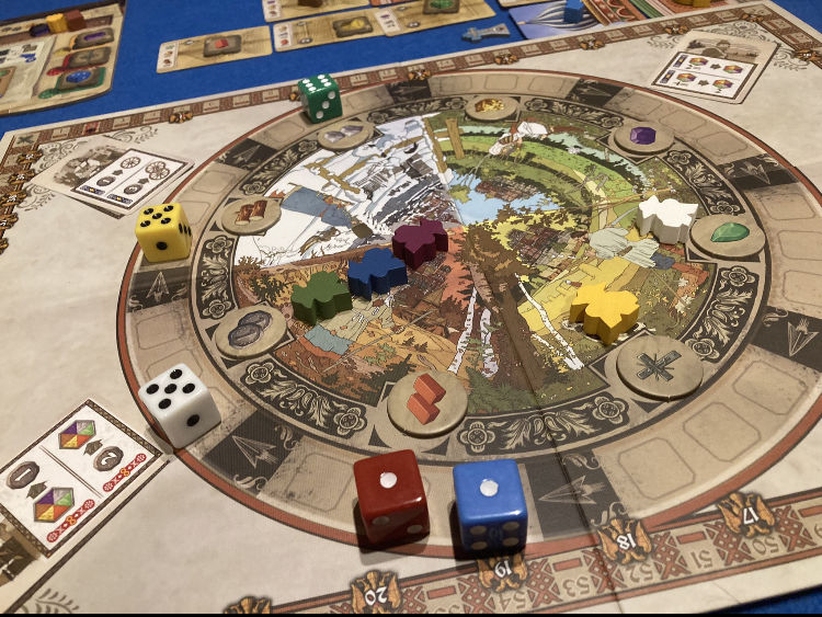 ・🎲の移動先にも、同色の駒を用意し目印として置く(5色分必要)