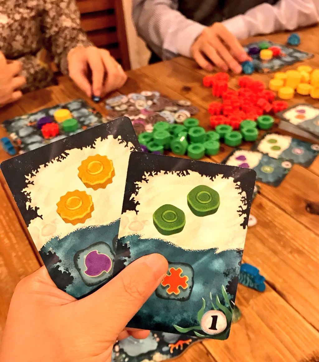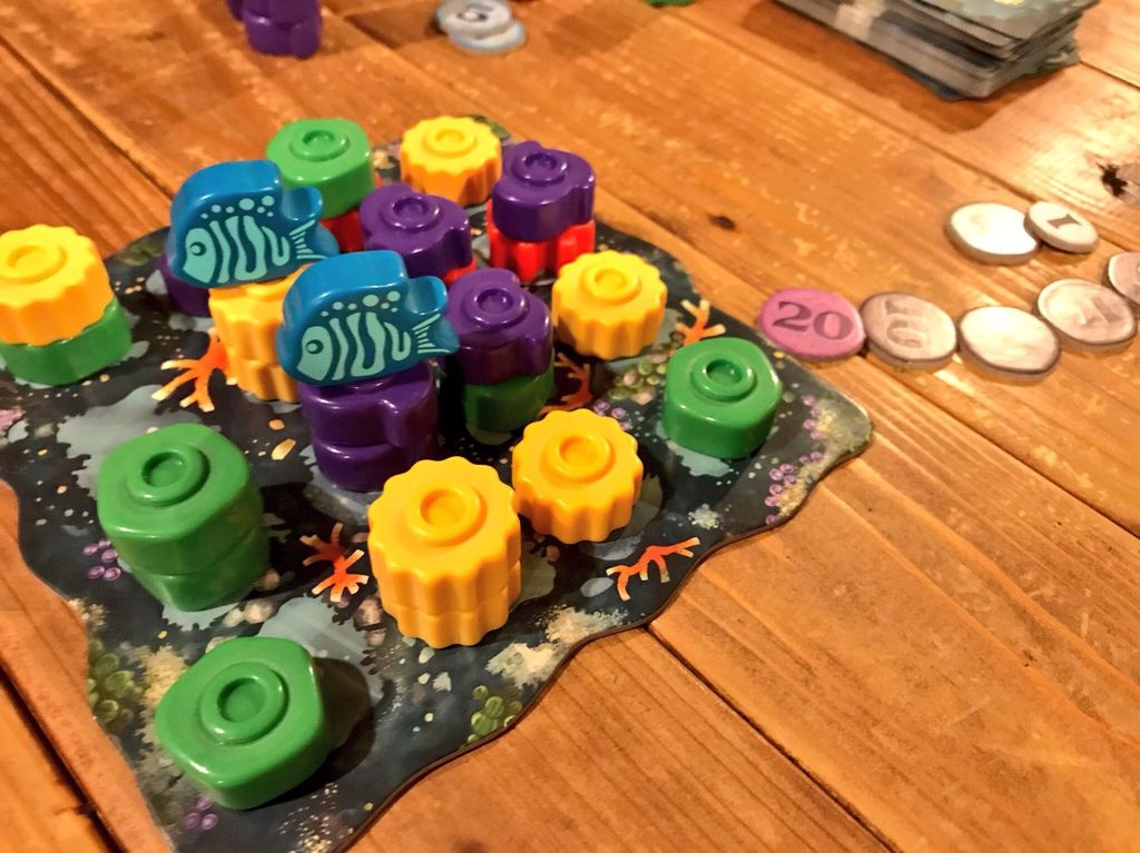 サンゴ礁を組み立てて特定のパターンを作って得点をしていくゲームです。プラスチックのつやつやしたサンゴ礁を使うので、テーブルの上はとても華やか!