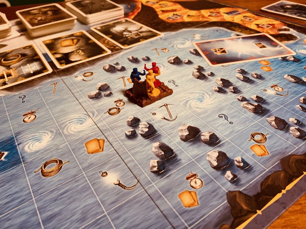 カードを引いてその色のマスまでイカダ駒を進めるのですが