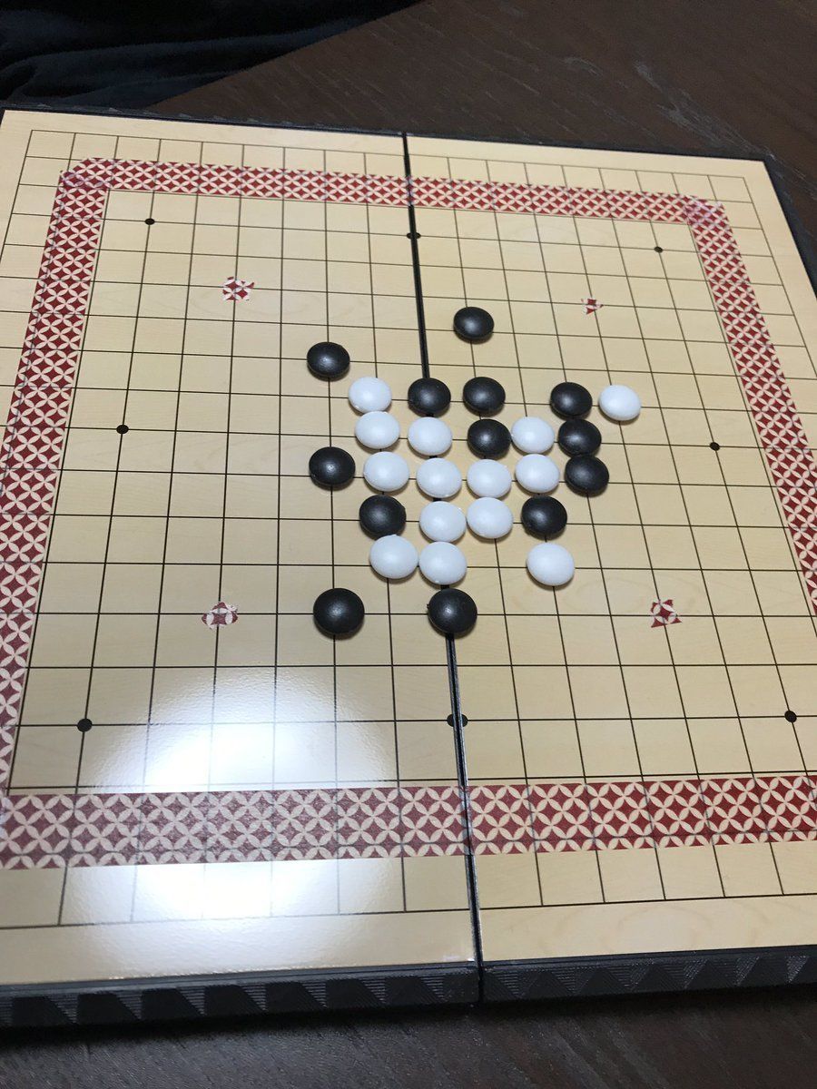 連珠は盤がちょっと狭いので、本に書いていた通りにマステで狭くしてます。