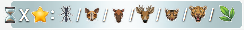 プレイヤーのターン開始前にスコアボードに空いているカードスポットがある場合、これらの空きスポットの左側にあるすべての野生動物カード、捕食カード、および植物カードを右側に移動します。その後、すべての空きスポットを、デッキからの新しいカードで埋めます。これにより、各デッキから最後に公開されたカードが常に左側に配置されます。