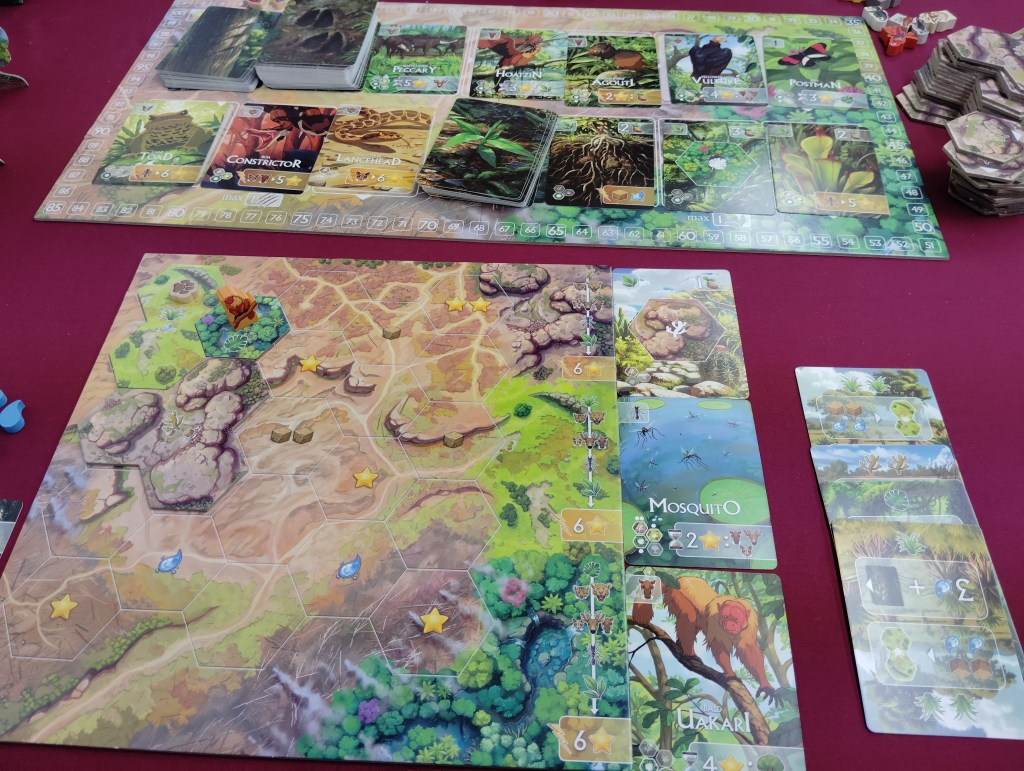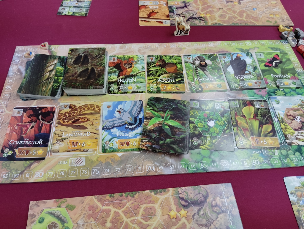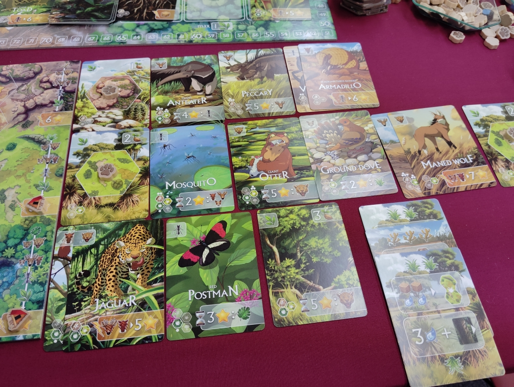 草食動物は3頭(匹)、捕食動物は1頭(匹)、植物は1本(1輪)まで1手番で迎えられます。