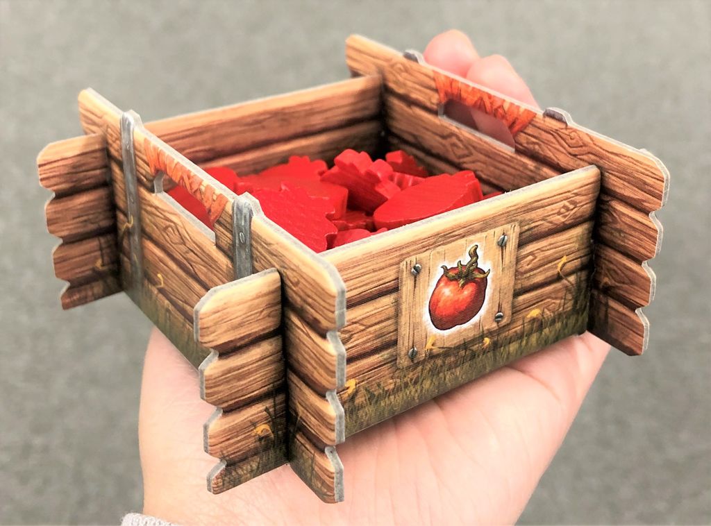 野菜の交換や売買はないのですが、価値はトマト<レタス<キノコ<カリフラワー<ニンジンです。収穫した野菜は、観光客に振る舞います!得点トラックが点数ではなく野菜の絵になっていて、次のテーブルに進むには書かれている野菜を提出しなければなりません。