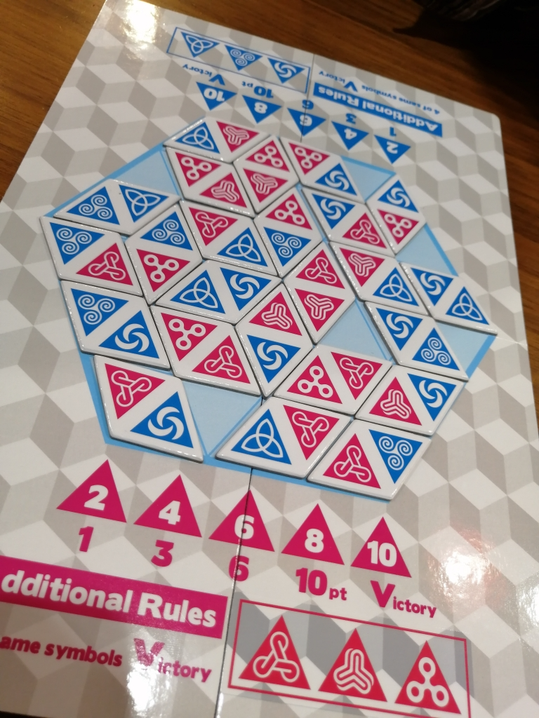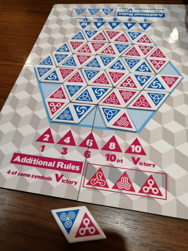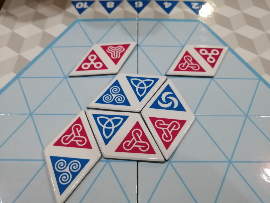 2マス繋がっているタイルを交互に配置していき、ゲーム終了時に各グループで偶数になっていれば得点になり合計点が高いほうが勝ち。10ぴったりを確定できれば即勝利。