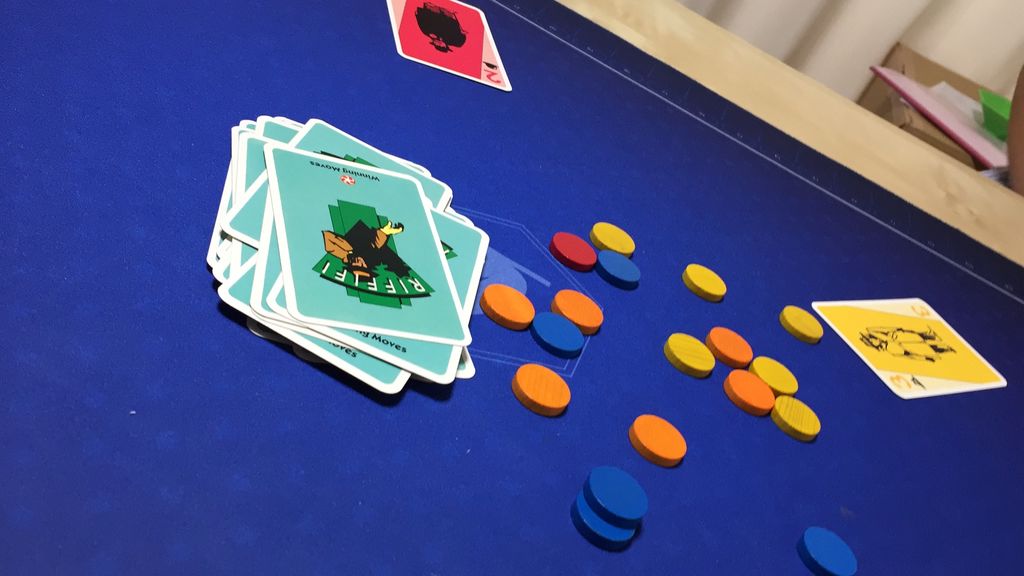 もし中央に取るチップが無くなったら、「最も多く持っているプレイヤー」から足りないチップを取っていくことになります。そう、手元にあってもそのうち取られてしまうかもしれないのです。