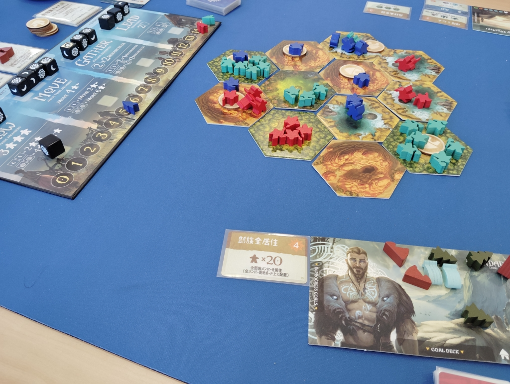 部族たちによるマジョリティ争いや村の建設や条件達成で15点以上を目指す。