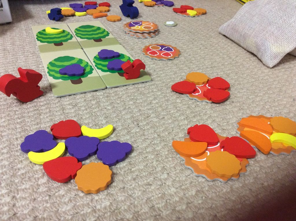 木の上に果物を二つ置き、ドラフトでとっていき、果物とタルト台が揃ったらタルトを焼いて、先に3つ焼きあがった人が勝ちというシンプルなゲーム。