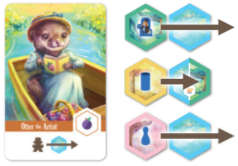 カワウソ 移動アクション中、プレイヤーのすべてのプレイヤーコマは川の地形を通過して移動でき、トークンタイプを収集することもできます。 |