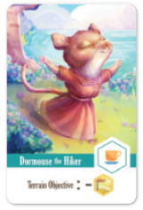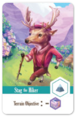 地形の目標は、プレイヤーコマが中央エリア内のどこに配置されているかに応じて達成されます。各地形目標カードには、目標、関係するプレイヤーコマの数、必要な数、およびスコアが表示されます。