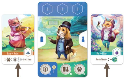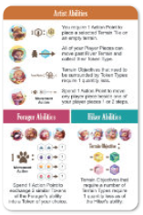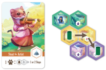 オコジョ 移動アクション中に、1アクションポイントを消費して、あなたのコマの横にある任意のプレイヤーコマを1歩または2歩移動します。 移動したプレイヤーコマでトークンを集めることはできません。 |