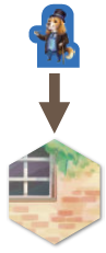 スタートプレイヤーから時計回りに、プレイヤーは開始位置として、窓付きの小屋の壁が描かれた、空いている地形タイルにメインコマを置きます。 |