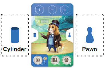 各プレイヤーは、自分のプレイヤー色の以下のアイテムを受け取ります。