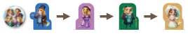 たとえば、このターン順では、青が最初に始まり、紫が2番目に、緑が3番目、茶色が最後に開始します。 |
