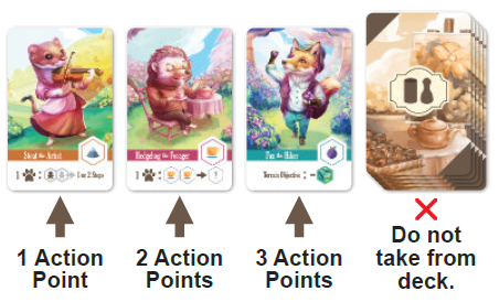 コンパニオンチョイスから、アクションポイントをコストにして、コンパニオンカードを1枚だけ取ります。
