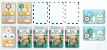 2) 48枚の地形タイルをすべて裏向きにシャッフルし、いくつかに積み重ねて地形デッキを形成します。3枚の地形タイルを表向きに公開し、地形チョイスを形成します。地形タイルの捨て場のスペースを残します。