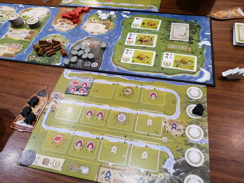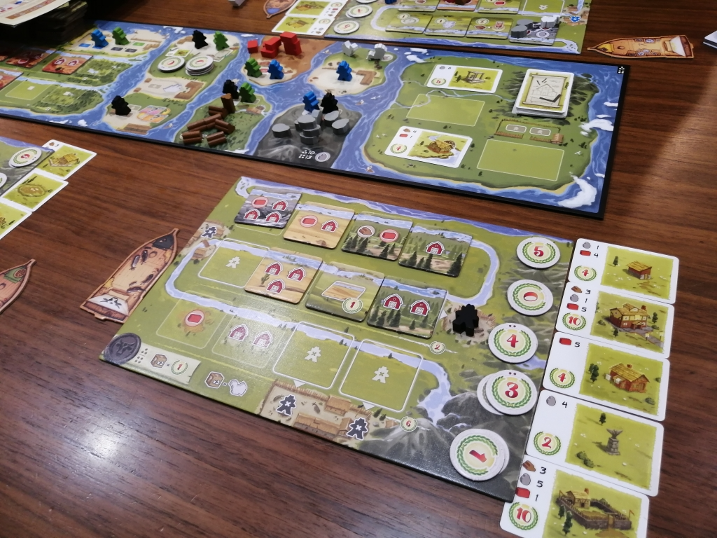 ゲーム終了条件が個人ボードのマスにタイルをすべて配置するかカードを5枚購入したら、そのラウンドでゲーム終了なんで6ラウンドぐらいで終わりますし3人で45〜60分ぐらいとワーカープレイスメントとして遊びやすいバランスのゲームでした。