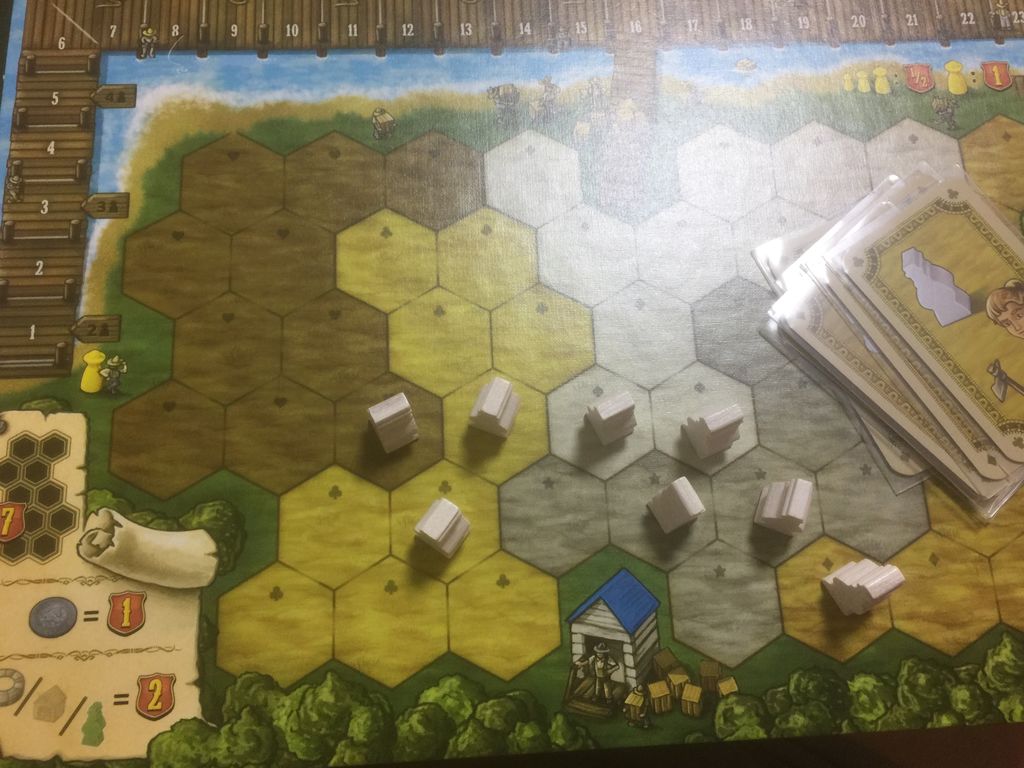 他のゲームでは、例えばパッチワークなどではタイルを取得したらそのまま配置します。しかしリバーボートでは、まずタイルを配置する場所を決めるフェーズと、配置するタイルを取得するフェーズに分かれています。
