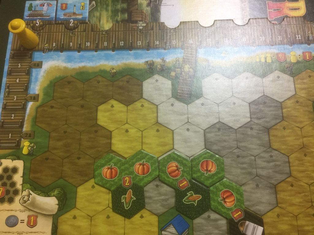 5種ある作物のうち1種類を資源として船タイルを取ります。船はボーナスがあるのですが払う資源の個数で効果が高くなります。