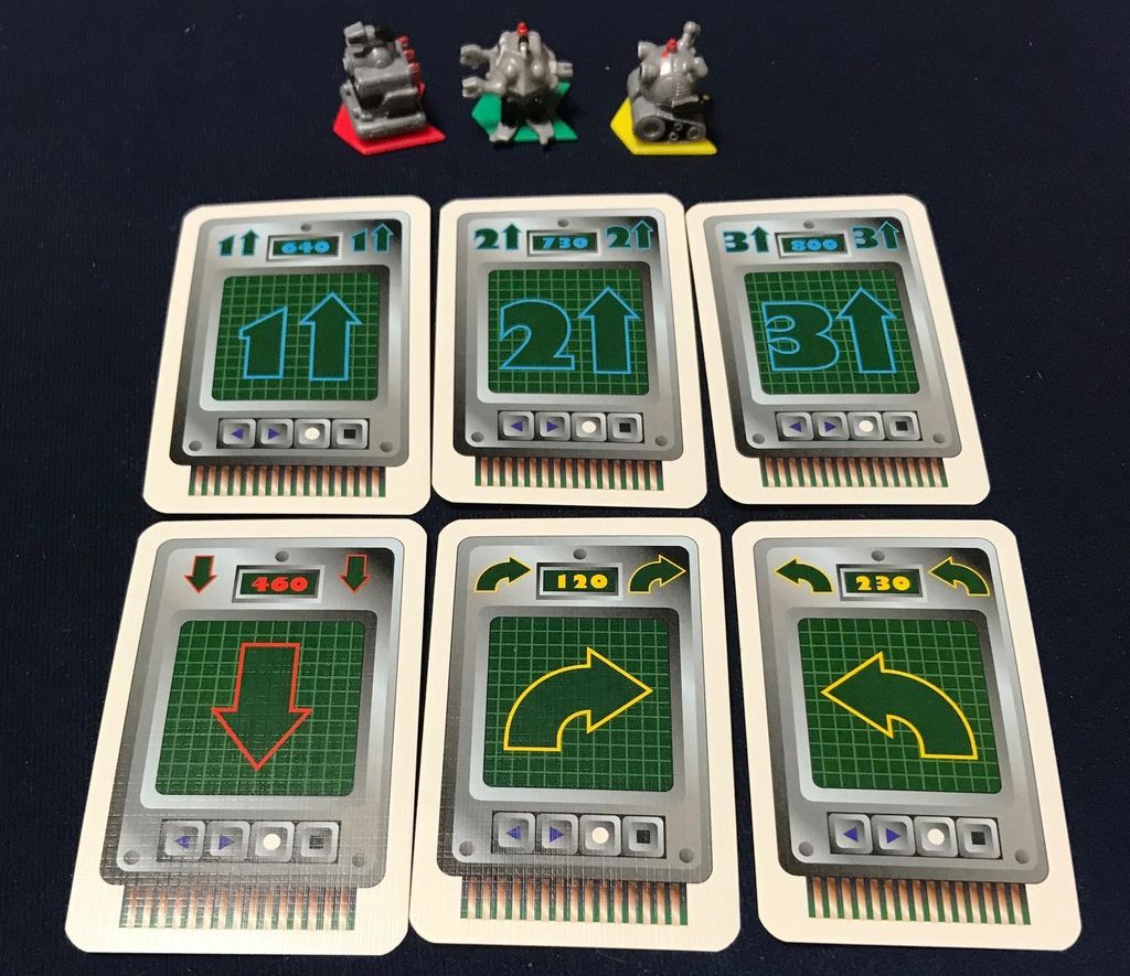 全員が1枚ずつ順番にカードを公開して自分のロボットを動かします。