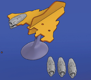 3-4人用ゲームでは、勝つために3つ追加するだけでよいため、宇宙船にすでに1つのロケットエンジンが搭載されている状態で開始します。ロケットエンジンを構築するたびに、宇宙船の後端に差し込みます。 |
