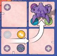 回転移動カードの移動を短くした場合、この1スペースの移動の後、あなたはロボットがどの方向を向くかを選択するオプションがあり、ロボットを元の方向または回転する移動カードが示す方向に向けることができます。