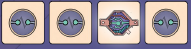 • さらに4枚のアビリティカードを引いて、ゲームボードの上側に表向きにして1行に並べて配置します。これらのカードはすべて異なる必要があります。同じ種類のカードを引いた場合は常に、それらをデッキの底に戻して新しいカードを引き、ユニークなカードが4枚並ぶまで繰り返します。次に、4枚のマスターコーダーカードをこの行の隣に表向きに積み重ねます。最後に、残りのアビリティカードをシャッフルして裏向きのデッキを形成し、表向きのカードの隣に置きます。このディスプレイ全体がアビリティサプライを形成します。