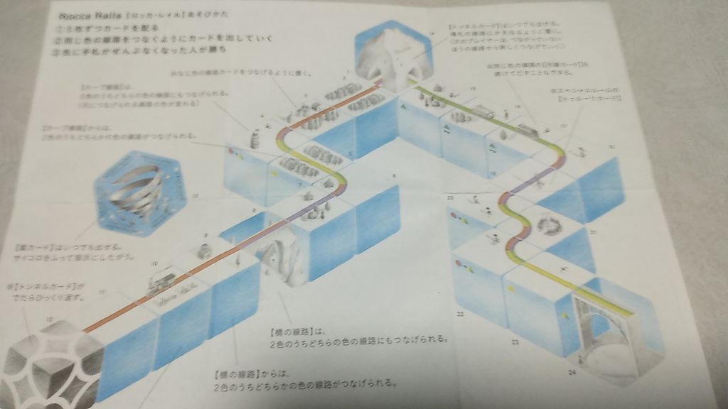 カードが六角形のため、配置後は空から見下ろしたような、不思議と奥行きのある感じになります。ゲームも基本的に、カードを配置するか補充するかの二択なので、とても優しい作りです。終了時には、完成した線路を撮影したくなるゲームになると思います。