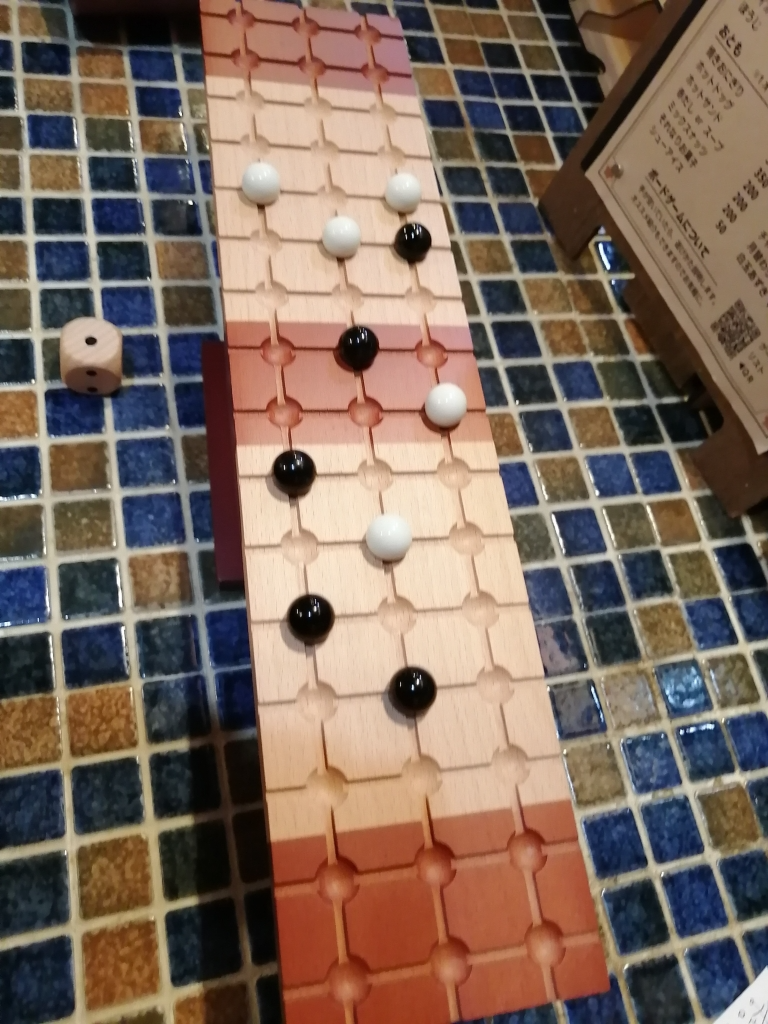 自分の玉を自分エリア側に移動させるだけでなく、相手エリア側に移動させてグラつかせたり、相手が4つの玉を移動させにくくしつつとか考えてしてたら案外バランス取れてしまって先に4つの玉をゴールされてしまったや。