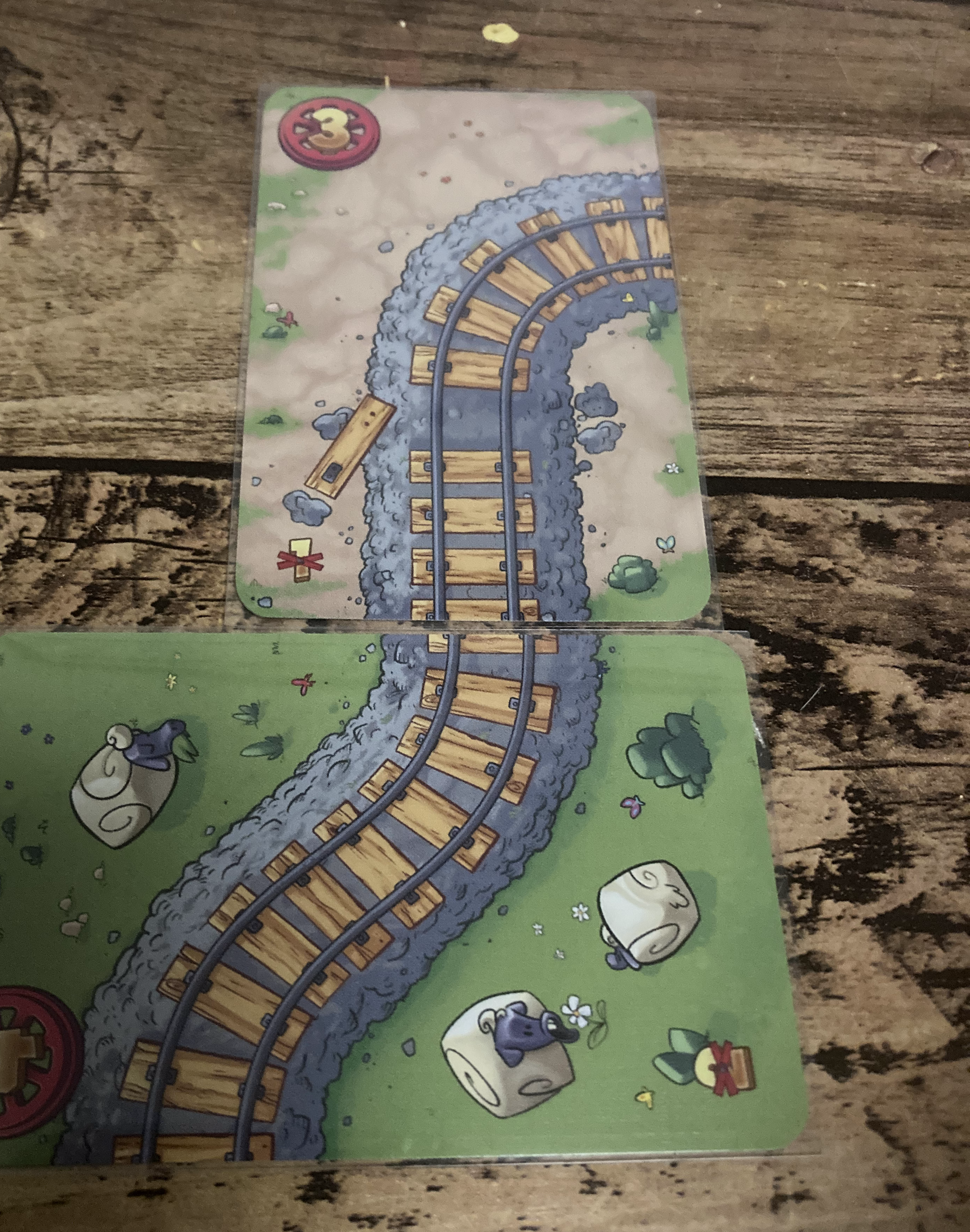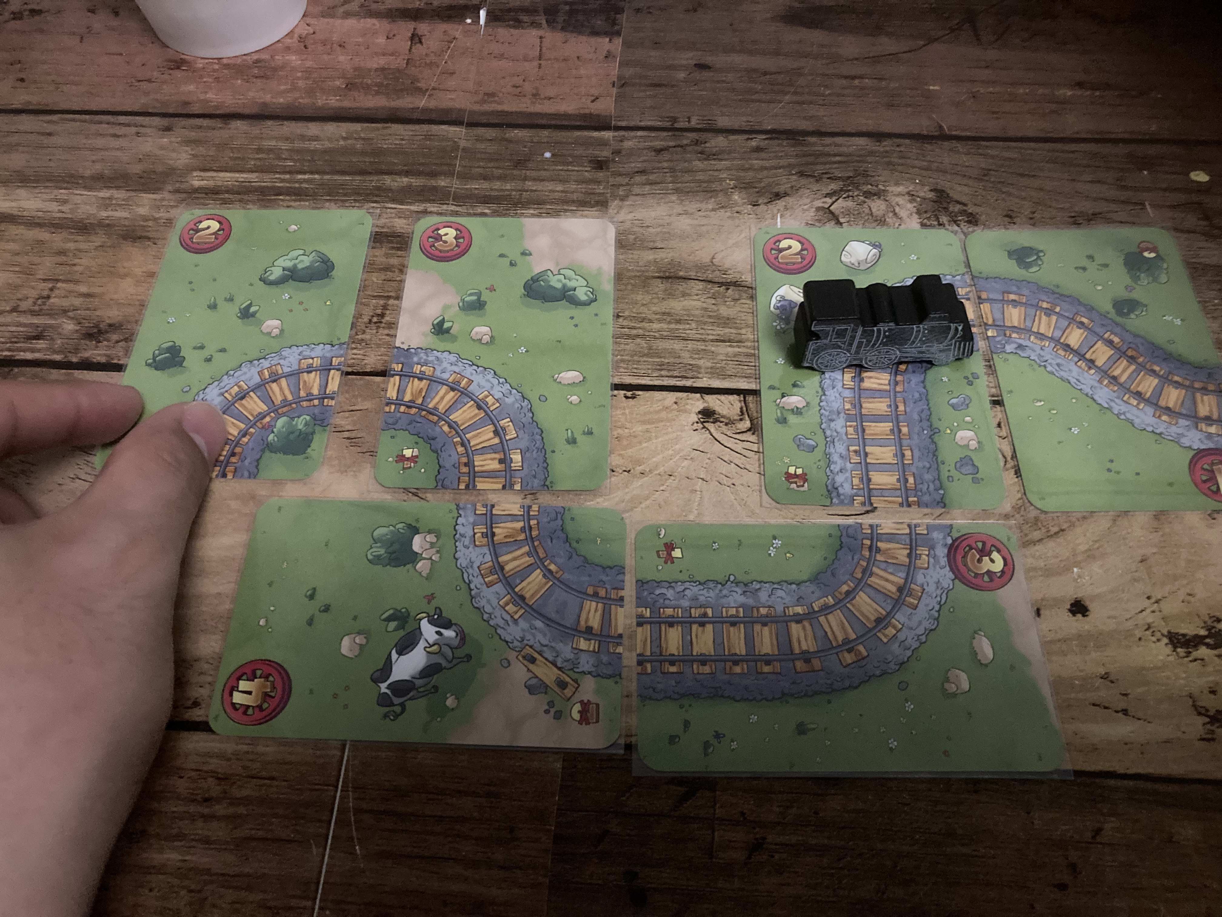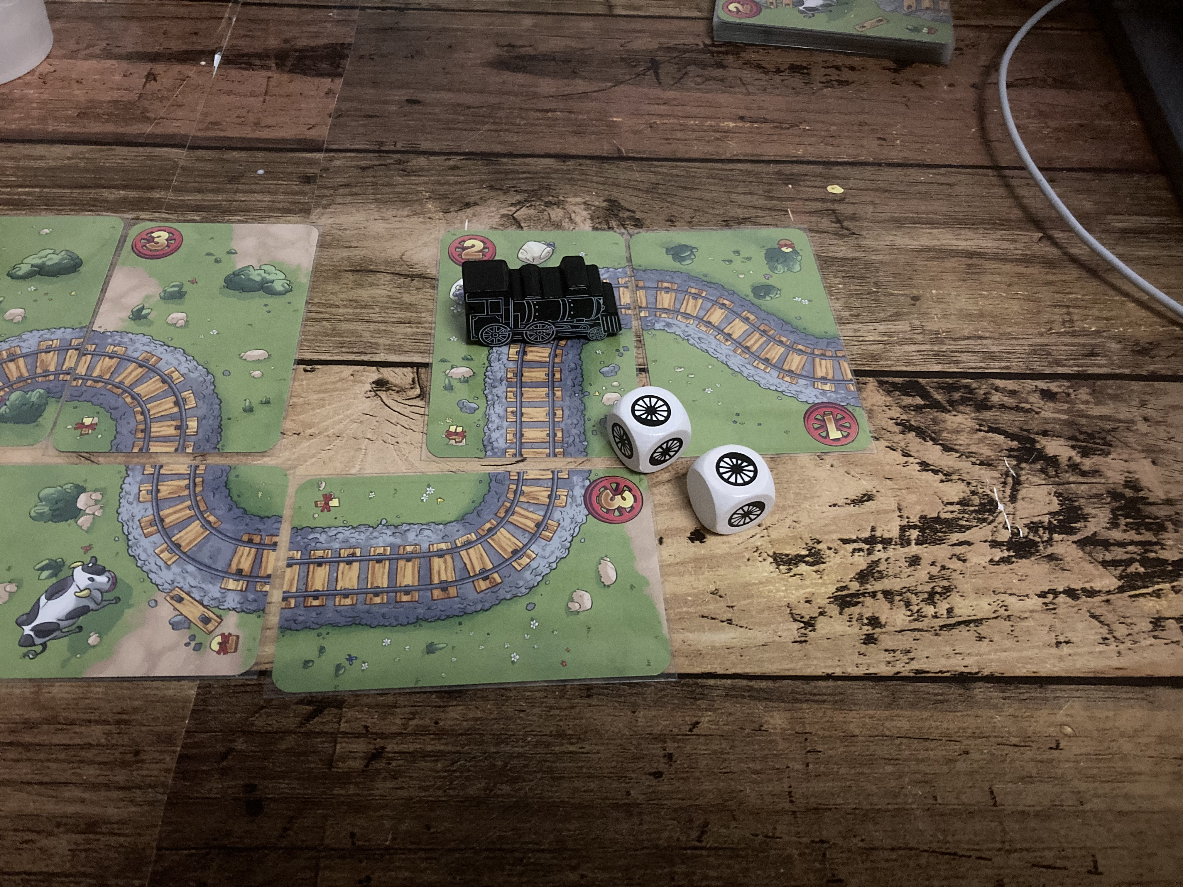 ダイスの合計値より線路カードがないまま進んだ場合、脱線し機関車は脱線前のカードに置きます。