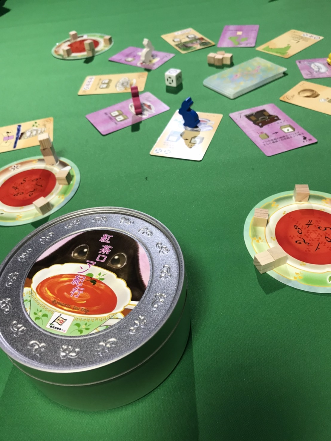 変則ロンデルを使った、茶葉を集めたり加工したりしながらより良いお茶を作って「紅茶王」を目指しすゲーム。