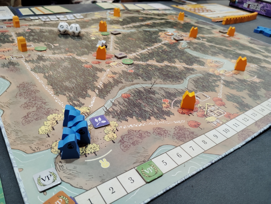 今回はウッドランド連合で遊んでみましたが、この部族はゲーム開始時にボード上には存在せず、ゲーム序盤は「私たちはあなた達のそばにいますよ」アピールである賛同トークンを配置していく。