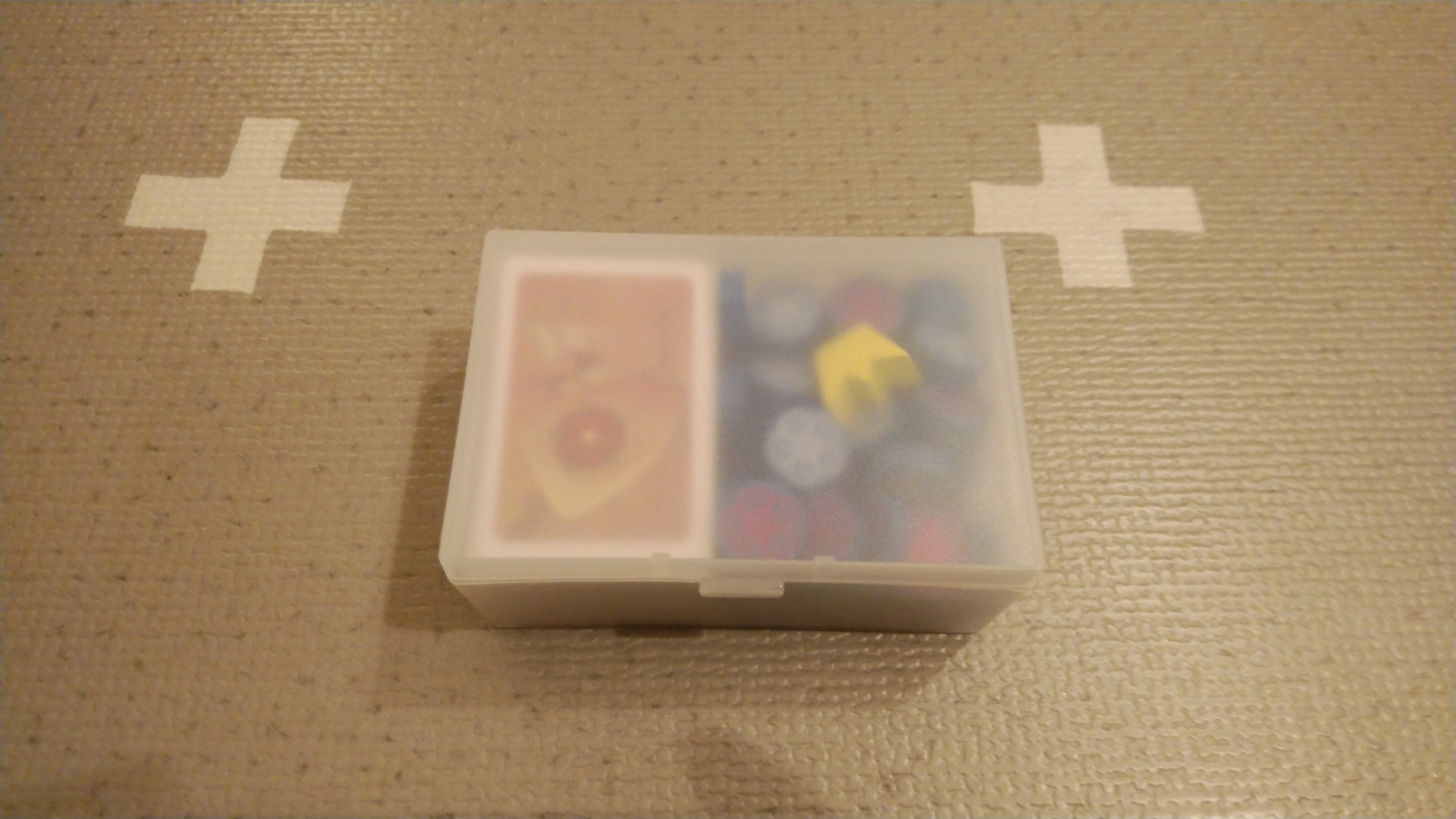 収納は下記の様に、ボード以外は無印良品のポリプロピレン小物ケース(L)1個に収まり、携帯性も抜群である。