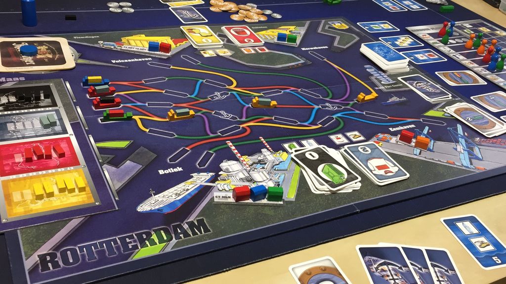オランダのロッテルダムを舞台に、タンカーをうまく港に付けて、生産し、それらを使って得点カードを集めるゲームです。拡張が入っており、フェイズ制からワーカープレイスメントになっています。