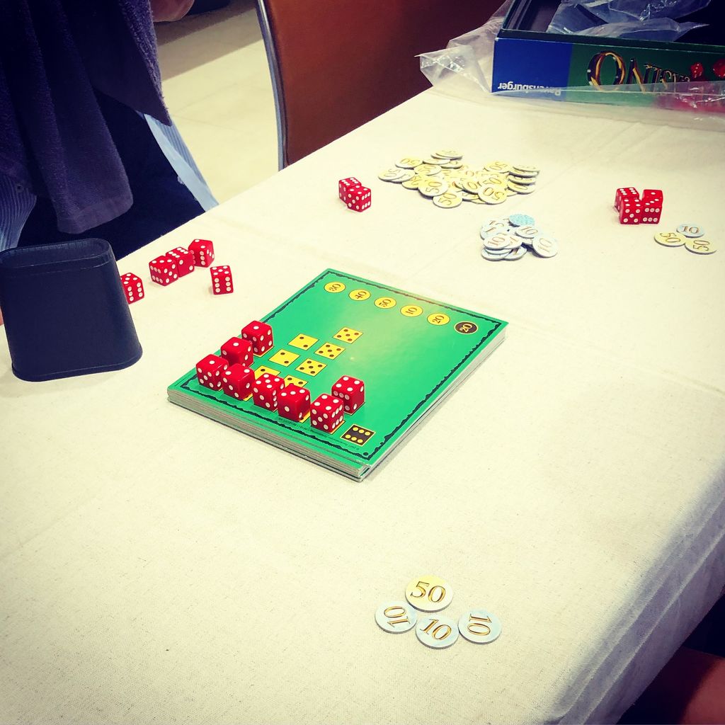 同じ目の一列に置き切った人は点数がもらえるけど、マイナス点になってしまう列もあって、あと1回、振るかやめるかが悩ましい!