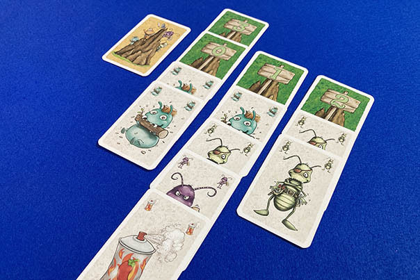 ただし、すべての蟻塚にコショウスプレーが1枚ずつ並ぶと、すべてのカードを捨てた上で、蟻塚が1つ完成した扱いになる。