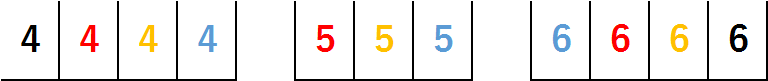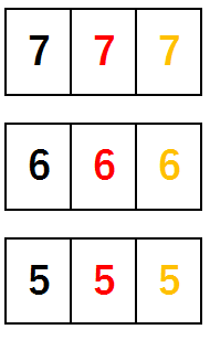 この様なグループの場合、縦列で見てそれぞれ「5,6,7」のランに組みかえられます。手札に赤や黒の「4」か「8」があれば、ランに組み替えることでそれらの手札を出すことが出来ます。
