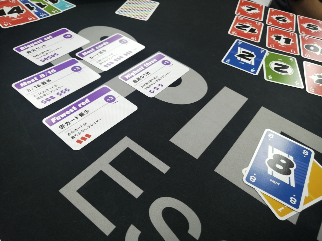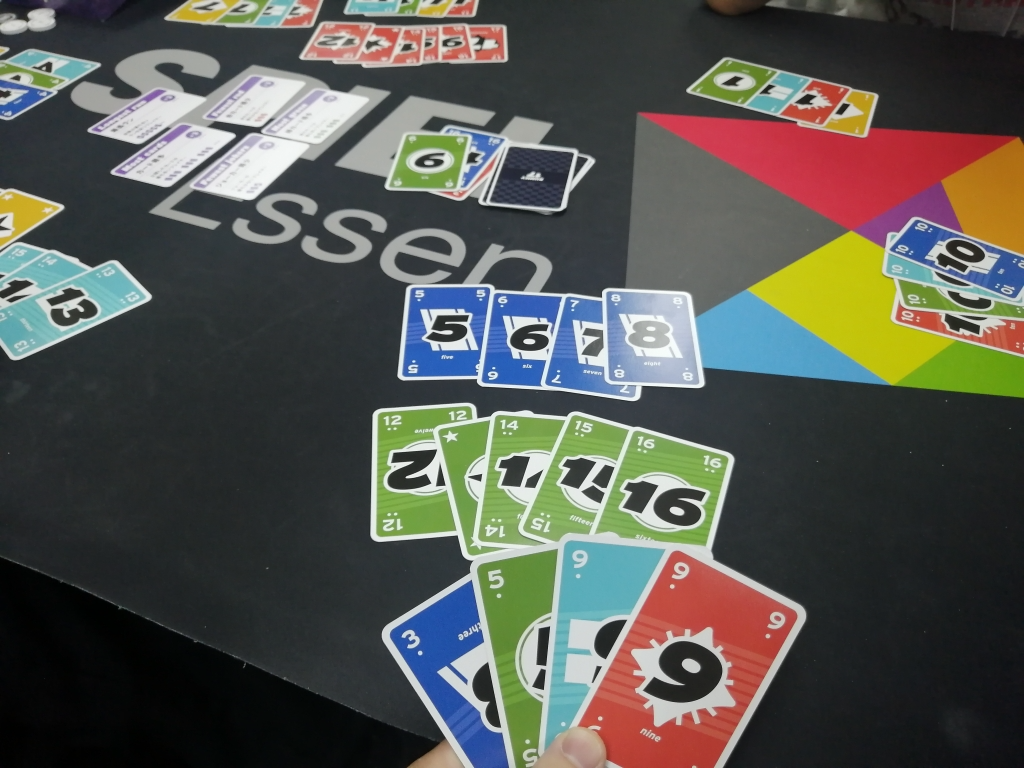 各色の数字カードは1枚ずつしかないから、他プレイヤーにランに必要なカードを獲得されていたり得点化されていると悲しい。