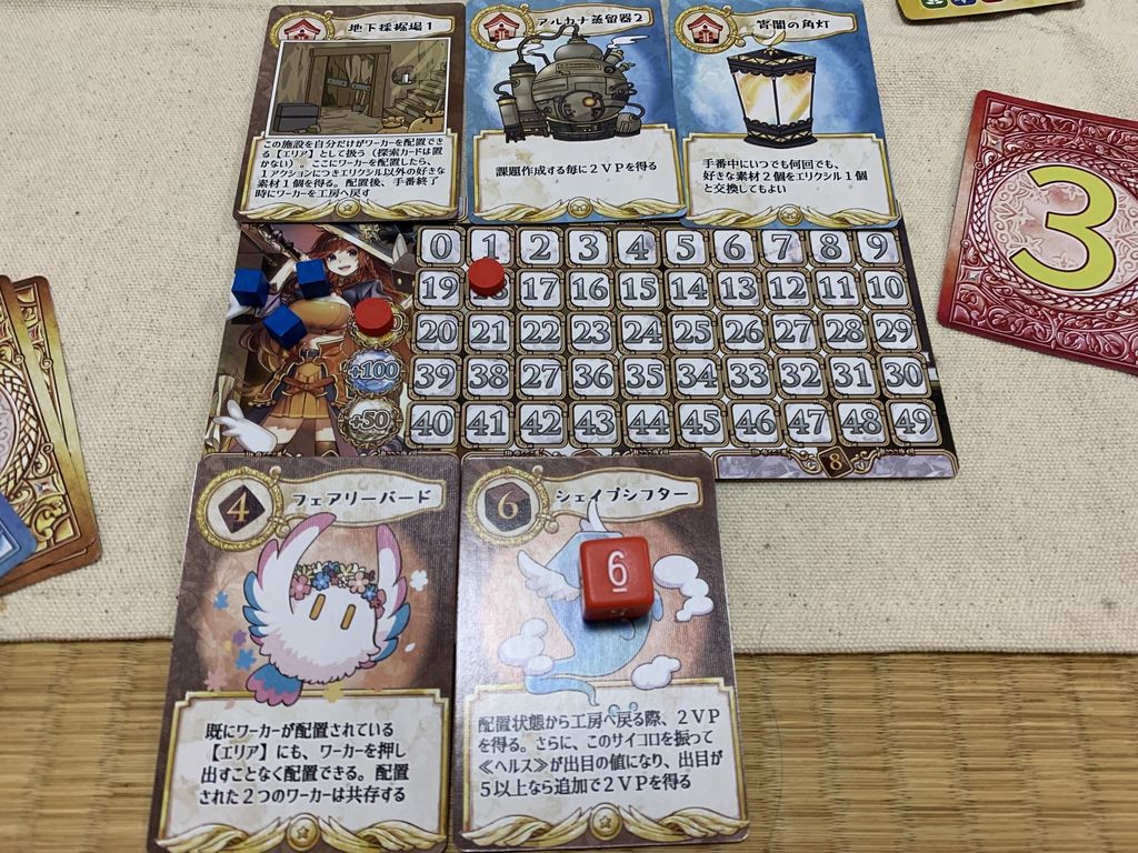カード次第でプレイングが変わるのと、ワーカーは押し出し可能なので、ワカプレの早取り要素はほぼなく、インタラクションも薄め。 複数回プレイで、毎回全く違うプレイングになりそうなのは良さそう。