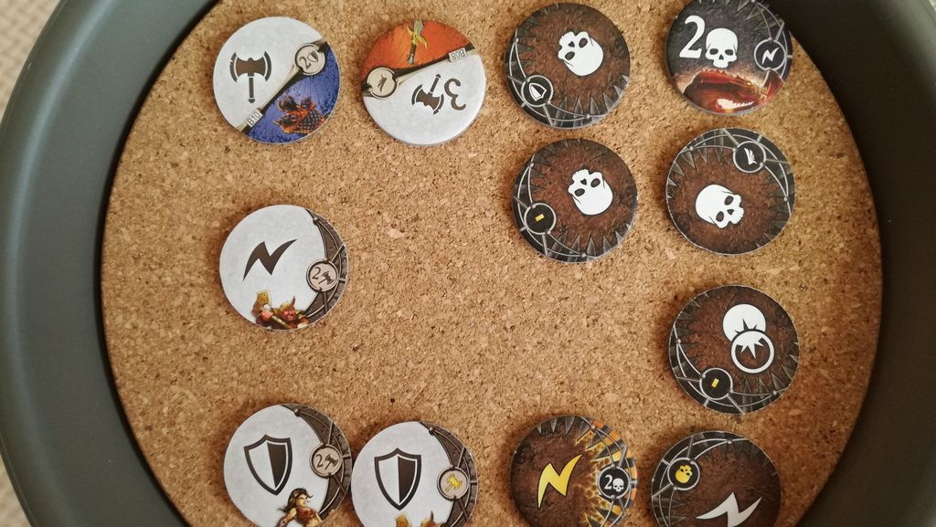 まずは、オーガが先攻(金色のアイコンが3つ、モンスター特性の『先攻-1』がついても先攻値は2、コービンは先攻値0)です。