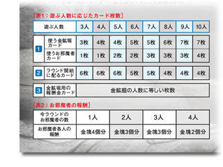私は、どうしても5人以上集まらない時は、3人と4人それぞれで金鉱掘りのカードを1枚減らし、必ずお邪魔者が加わるようにして遊んでいます。