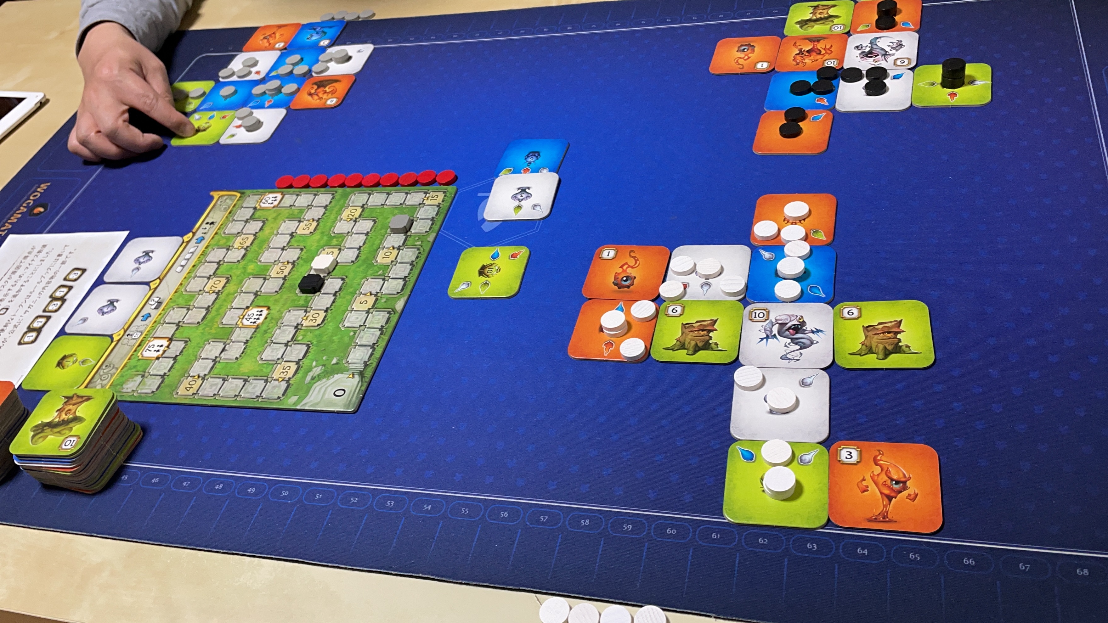公開されたタイルから1枚、自由に取ってタイルに示された条件を達成していくゲームです。パズルではあるのですが、テンポがすごく良いゲームです。